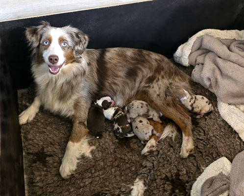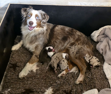 Am 29.11.25 ist unsere Lumi stolze, glückliche Mama ihrer ersten Babies geworden. Papa Colin kann sein Dazutun nicht verheimlichen ;-). Die Kleinen sind fit und munter und sooooo süß….Die Temperamente bewegen sich eher im Mittelmass, die Grössen im Typ der Eltern.